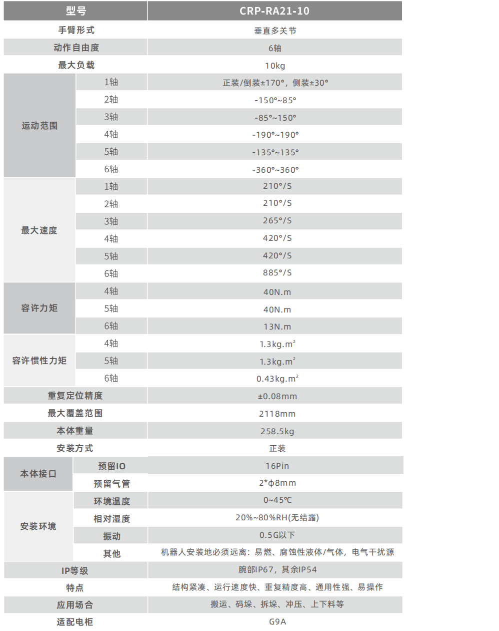 机器人整体结构高度紧凑、轻量化,更加轻巧适用,尤其腕部更加小巧,满足更多的场景。