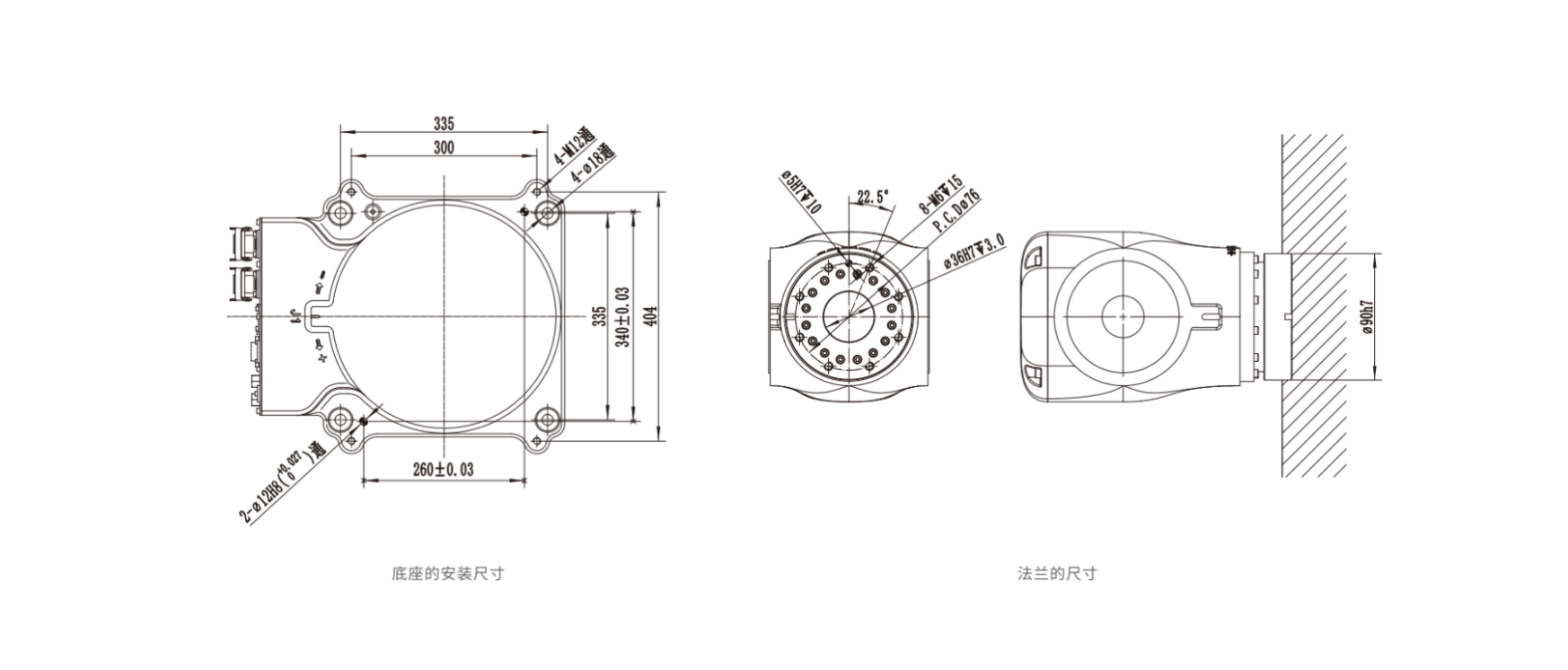 J2、J3、J4轴上都预留安装孔位,方便安装固定电磁阀以及其他配件等。J3轴位置提供用户IO接口以及双回路气管,更加满足搬运应用。