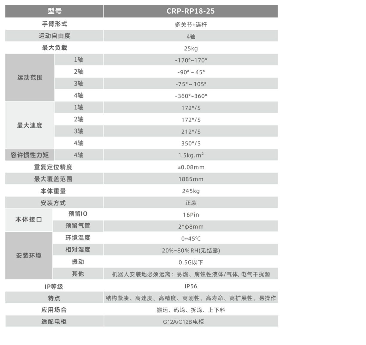 • 4轴为25型谐波减速机结构,刚性更强,满足搬运场景的特殊要求。